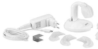 Inhalt: Bite Light LED-Lampe, je 1 x autoklavierbarer Aufbissaufsatz in den Größen "Small" und "Large", Ständer mit integrierter Ladevorrichtung, USB-Ladekabel inkl. Stecker