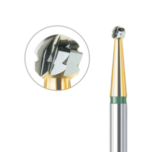 Der grüne Ring identifiziert die schnittfreudige Grundverzahnung. Die besondere Schneiden-Geometrie reduziert Vibrationen für eine patientenfreundliche Exkavation und Kavitätenpräparation.