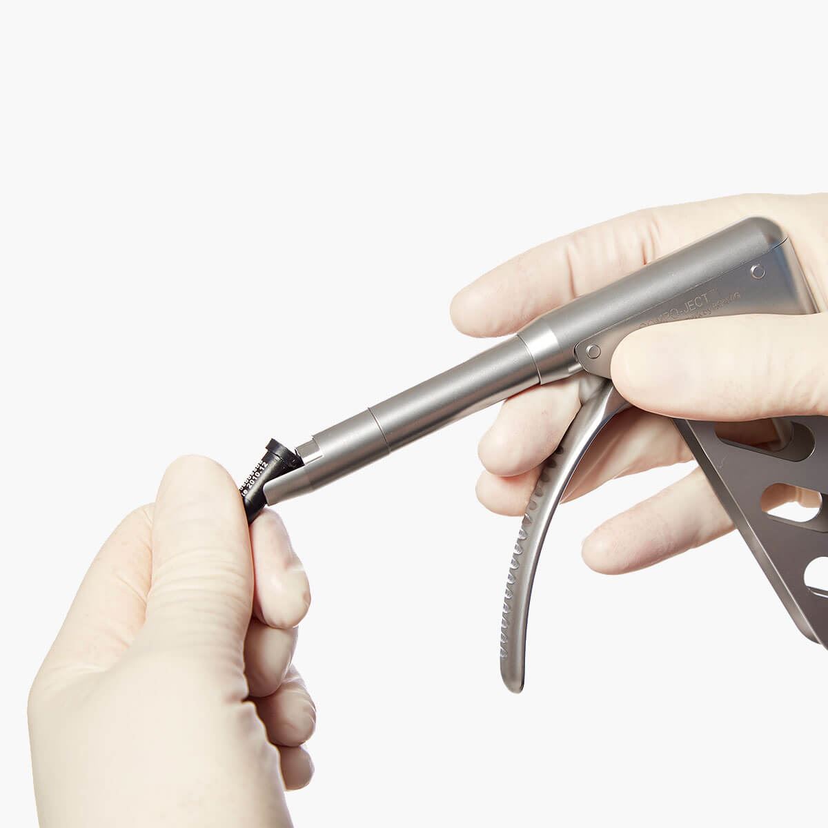 Der Applikator hat einen ergonomischen entworfenen Fingergriff mit einer Übersetzung, die es leicht macht hoch viskoses Composit-Material zu applizieren – sanft zu Hand und Handgelenk.