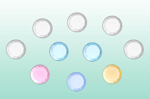 5x weiß, 2x aquamarin, 1x hellblau, 1x pink, 1x champagner