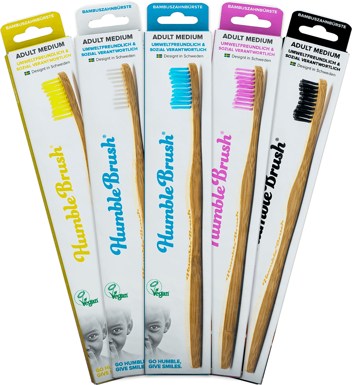 Humble Brush Zahnbürsten sind antibakteriell, vegan und in den Stärken soft und medium in verschiedenen Farben erhältlich.