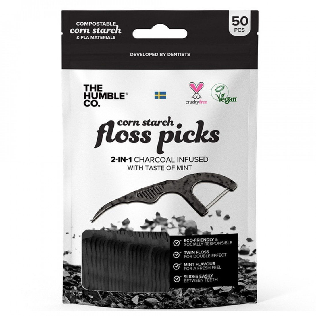 Die von Zahnärzten entwickelten Floss Picks sind Zahnstocher und Zahnseide ein einem. Mit Aktivkohle für eine natürliche Zahnaufellung.
