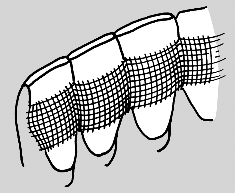 - 6 aufeinandergenähte Lagen feinmaschigen, ultradünnen und silanisierten Glasfaserbandes