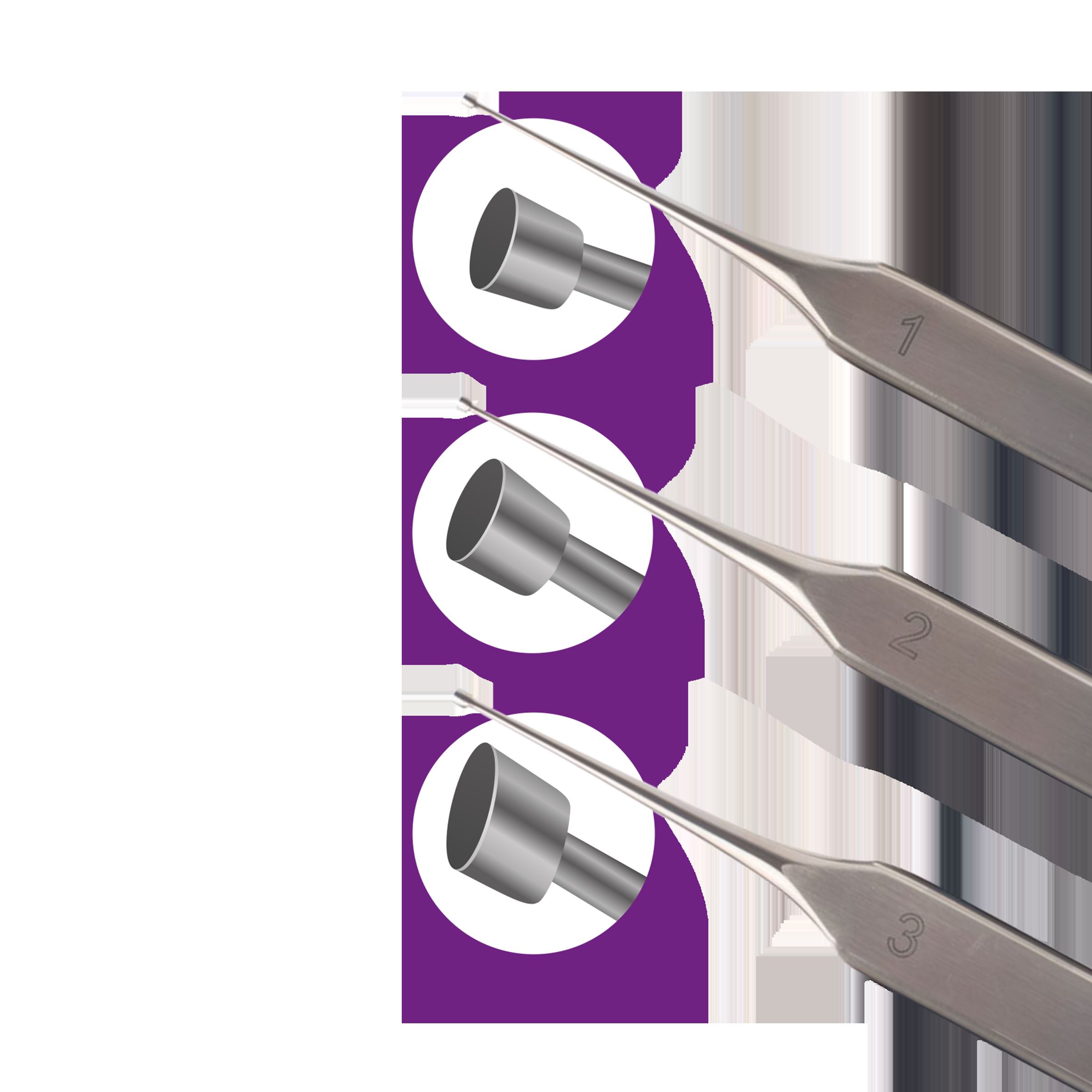 Kronenentfernung in 2 Minuten, ohne Gefahr für den Zahn, Erhaltung der Krone für eine eventuelle provisorische oder langfristige Wiederverwendung. Hinweis: Garantie auf das Instrument nur bei vorherigem Kauf der anderen beiden Instrumente des Einführungssets.