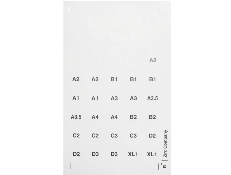 Zirc Farbetiketten / Aufkleber für Komposit- und Minifill-Wannen, 2 Stück